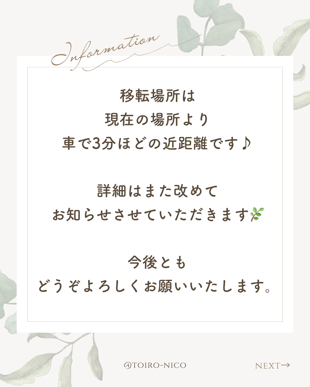詳細はまた改めてお知らせしますね。今後ともどうぞよろしくお願いいたします。